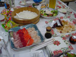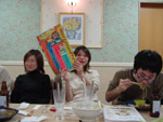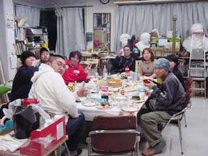 【食べまくり?】 2003.12.28-29 28日は、beeの親戚のお店「昔ばなし」にて、 餅つき大会があったのでオモチを頂きに♪ 夜は、みんなをえりす画材店に呼んで、お雑煮大会〜。 真夜中まで盛り上がり、えりすに泊まってった人もいました(笑 29日は、ニクの日(勝手に)。焼肉をみんなで食べてきました♪ 退院してから、遊びも、食も、全開だなぁ・・・。