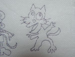 【芸術家達の集い】 2004.06.16 エミパパ&エミママの絵に続いて、ウチラも絵の集いなんかをしてみた(爆) っていうか、ただ、たんぽぽラーメンの帰りに、 ファミレスでデザートついでに描いたんだけど・・・。 スバラシイ作品を、ご覧ください・・・。 先に帰った、たー&かずっち&2Fの作品も見たかったなぁ。