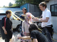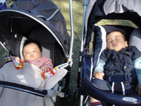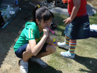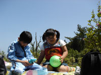 【BBQ】 2005.05.04![]() 今日は、beeの畑で恒例の、BeeBeeQ♪ (beeありがとう!) 元々は結婚パーティの時の参加のお礼としてプレゼントした、 えりす画材店特注の各人の車との写真を、エミコちゃんがマイカーで 取りに来るという話から始まった。 彼女は、最近やっと念願のマイカーを持つことが出来て今回が初めての遠出。 あいばっちの助けを借りながらも、元気よく日立に来てくれた!ぱちぱち☆ ![]() ![]() ↑ってことで、到着するやいなや、投げテープにて熱烈歓迎モード! エミコちゃん、顔埋もれてるし(爆) ![]() いつものごとく、お料理は、あっというまに消えてゆきます・・・。 ![]() 今回は、とっても可愛いゲストも 来てくれたんです! kantomo5の娘の「空花」(左)と、 たーの息子の「トワゴン」(右)♪ もぉ・・・ 二人の笑顔に、みんなメロメロりん。 ![]() ![]() もうすっかり仲良しさんになった、お馴染み翼&マリサコンビや、 まなみちゃんの笑顔も加わって・・・あ〜なんか・・・ホントにいいなぁ。 ![]() ![]() オジサンやオバサン達も負けてません!(爆) ![]() ![]() お子様三人には、ジャがバターやフルーチェ、「ところでん」も作ってもらいました! (右の写真の文字に注目!) 解散後は、えりすに集まって珈琲・・・のつもりが、盛り上がり、 結果、えりすにお泊まり組も発生。(笑) 明日は、二人をちょこっと観光案内して見送る予定です♪ 明日で、わたしのGWも終わり。楽しい一日にしたいです。 ![]() <オマケ> おいちゃん(ろし)も、 なわとびを、がんばってみた。 |