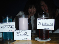 【のみかぁ〜ぃ】 2005.07.09![]() ![]() 本日は、仲間と飲み会でした! 友達がバーテンをやっているお店、餃子BAR、『G-BROS』。 入り口ドアがいきなりナルディのハンドルってのが、私的に嬉しい(笑 ![]() ![]() 次々と、ビールやカクテル、そして、餃子達が仲間のお腹に・・・!!! 餃子は、「焼」「揚」「水(湯?)」の3パターンがあります。 実はこの日の為に、友達バーテンの美斗くんと相談していたことがありました。 参加した女性だけに、その人に合ったオリジナルカクテルを作ってもらうことでした。 さて、そのネーミングは・・・・↓ えみりん筆ペンにて、手書きの札です〜 誰のカクテル名だか判りますか?(笑) ![]() 気合い入れて書きましたが、残念ながら、どこかに、誤字があります。 さて何処が間違ってるでしょー!? ![]() ![]() 女性陣は、おいしそーにたのしそーに飲んでくれました♪アリガトウ。 そして、わがままきいてくれた、美斗くん、アリガト〜☆ ![]() そうそう、こちらのBARには、 テーブル毎に、ろし・・・じゃなかった モアイティッシュケースが置いてある。 なので、”モアイオフ”ってことで、 自分ちのも持参、 モアイリーダーのろしにも参加してもらい 集合写真を撮りました(爆) |