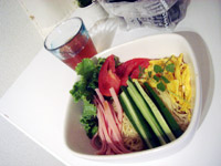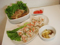 【手抜き料理】 2005.07.21![]() ◆豚肉と野菜の味噌炒め (肉を煮て脂だし後、野菜と一緒に 味噌や生姜で味付けして炒める) ◆しゅうまい (蒸してかにサラダを飾るだけ) ◆焼きなす (魚焼き機で焼いて皮をむくだけ) ◆明太子(切って皿に盛るだけ) 以上15分クッキングでした(笑) |