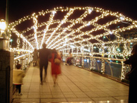 【横浜クリスマスイルミの旅】 2005.12.10-11![]() 週末のお休みを利用して横浜へ! 高速バス&京浜東北線で行きました。 毎年訪れる横浜。 クリスマスイルミネーションが始まったということで、 今回は「クリスマスイルミの旅」にしてみました。 案の定、街はクリスマス一色! ![]() まずは、石川町で降りて、 山下西洋館めぐり。 各館でイギリス・チェコ・フランス・・・ などの、世界のクリスマス展が 開催されています。 ![]() ![]() 洋館の中は、全て無料で入れて 各国のダイニングを再現した部屋を 観る事が出来ます。 どれを観ても、とっても素敵・・・♪ (他の写真はレポにて) ![]() ![]() もちろん、クリスマスツリーも。 国によって、シックだったりド派手だったりと、さまざま。 でも、どれもとっても暖かい・・・。 (他の写真はレポにて) ![]() ![]() 洋館めぐりをしていたら、あっというまに外が真っ暗。 港が見える丘公園から、 宝石のような横浜の街が見えました。 ベイブリッジも輝いてました☆ ![]() ![]() マリンタワーを左に観ながら (このタワーは、世界一高い灯台) 山下公園をのんびり散歩。 暗くなっても、大道芸をやっていたりと とっても賑やか。 「氷川丸」もクリスマスバージョンです。 ![]() ![]() ![]() 赤レンガ倉庫の広場では、期間限定のスケート場も出来ていて、 すいすい滑る人・ヨチヨチ滑る人などを通りから覗けました。 私はスケート場そのものを見たのが生まれて初めてだったので、とっても新鮮! ![]() ![]() みなとみらい21の夜景を観ながら、汽車道を歩きます。 いつも水面に映る、”ゆらゆらの夜景”に、見入ってしまいます。 ふねの帆のカタチをしたヨコハマ・グランド・インターコンチネンタル・ホテルも、 クリスマス色(赤)に。夕張メロンみたい・・・(^^ゞ ![]() クイーンズスクエアのツリーは、 夕方から、イベントアリ。 会場が暗くなり、音楽と共に 色々な色に変色します。 (詳しくは公式サイトにて) ![]() ![]() ランドマークプラザのツリー。 まず物凄い大きさに圧倒されます。 同じく夕方からイベントあり。 ツリーと上のオーロラが輝きます。 スワロフスキークリスタルが沢山ついて いて「1個もって行きたい」という会話が あちこちで聞こえた(笑 ![]() ![]() 最後に、光のトンネルを通って 関内駅近くの宿へ向かいました。 石川町駅からみなとみらい21まで・・・ 歩いたのは かなりの距離。 最後には、ギブスの方の足が 上がらないくらい重たく感じた。(^^ゞ でも歩いたからこそ見つけた イルミポイントも沢山あったかな。 * * * * * * * * * * * * * * * * * * * * * * * * ![]() 次の日は、中華街直行。 混雑するお昼前にお目当てのお店、 「菜香」に入ります。 飲茶専門店。 ”あひるのあぶりやき”、メッチャ美味! これから多分必ず頼むでしょう! コースもあるけど、こうして好きなものを チョイスする方がオススメ。 ![]() おなかイッパイになって、再びMM21へ。 横浜の観光ポイントを約20分おき に走っている観光用バス「あかいくつ号」 で、向かいます。 (1回100円、1日券300円) バスの中では、地元ボランティアの方が 観光アナウンスをしてくれてました。 横浜ワールドポーターズのツリーは イチゴのクリスマスケーキのようなのが 天井からぶら下がってる! 買い物嫌いな おいちゃんは、 まるで生き地獄のような顔をしていて あまりにもかわいそうなので早めに 切り上げ、お茶して店を出て、 横浜を後にしました。 ![]() ショッピングモール「ラ・チッタデッラ」に寄ります。 ここのクリスマスイルミを観たかったのと、 お目当てのお店ミニカー屋 「PIT」に行きたかったから☆ ミニのクリスマスジオラマを発見。 唯一今回の旅で買った物となりました。 ![]() ![]() ![]() 帰りは、東京駅の「ラーメン激戦区」にて。 激辛つけめん専門店 「ばくだん屋」。 ”2辛が標準”とあったので、4辛を食べてみた。辛党の私は10辛でもokそう。 店内には、20〜100辛を食べた人のサインが飾ってありました。 クルマで行っていたら寄れなかった所満載の、ちょっとお得な旅でした☆ (体中の筋肉痛で大変だけど・・・) まだまだイルミはやってるので、みんなも行ってみて〜! |
