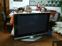 【家族】 2005.12.28![]() 知らないうちにプラズマテレビ (50インチ)を購入していた! 狭い階段を、ぜぇぜぇ言いながら エミパパとおいちゃんで運んで、 設定完了、いざ、電源ON!!! 「おぉ〜〜〜〜〜〜っ!!!!」 先日見た映画「Always 三丁目の夕日」のワンシーンのような状態に(笑) お正月は、家族で映画(DVD)を観る事が決定☆ 何を借りてきてあげようかなぁ。 「ホラーじゃないやつね」 と、皆に念を押されてしまった(爆) とりあえず大晦日は、この大画面で、紅白&プライドかな? (2画面同時に出せるらしい!) |