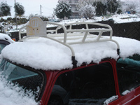 【雪〜〜っ!】 2006.1.21![]() ![]() あまり雪には縁の無い日立にも、ついに!雪が積もりました〜っ! ドアを開けたらビックリ、ミニ達が雪の帽子を被ってノッポさんになってた(笑) ![]() ![]() ミニの屋根の雪かきをしていたら、なんだかワクワクしてきちゃって、 雪だるまを作ったり、誰も歩いてない場所を、散歩してみたり♪ ミニ達はスタッドレスを履いていないので、歩いて1分の饅頭屋さんにいって、 みそまんを買う以外は自宅待機の一日でした(笑)。 |